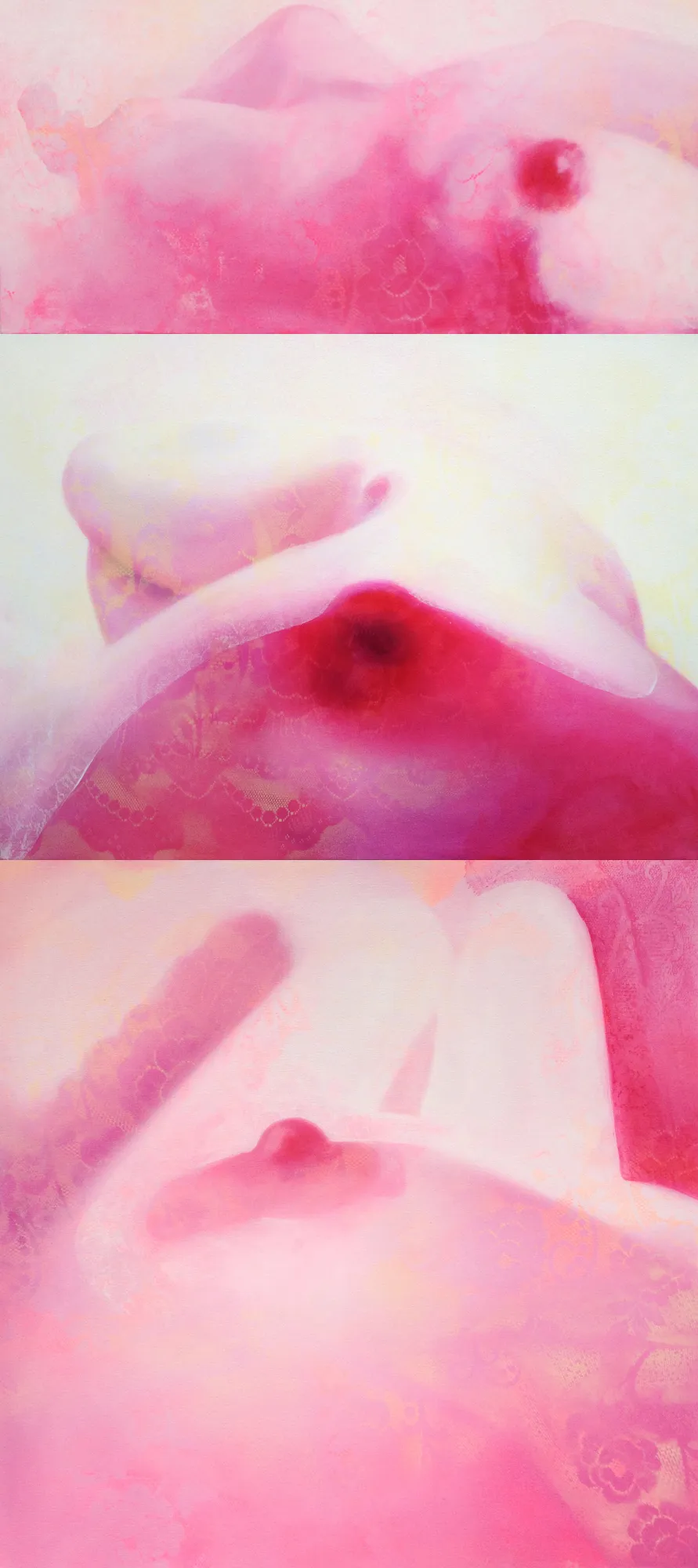 Originally this series of breast paintings were named "BoobHead". They speak of sexual objectification of the female form, self objectification and the ideology of Western feminine beauty. Pink is a T...