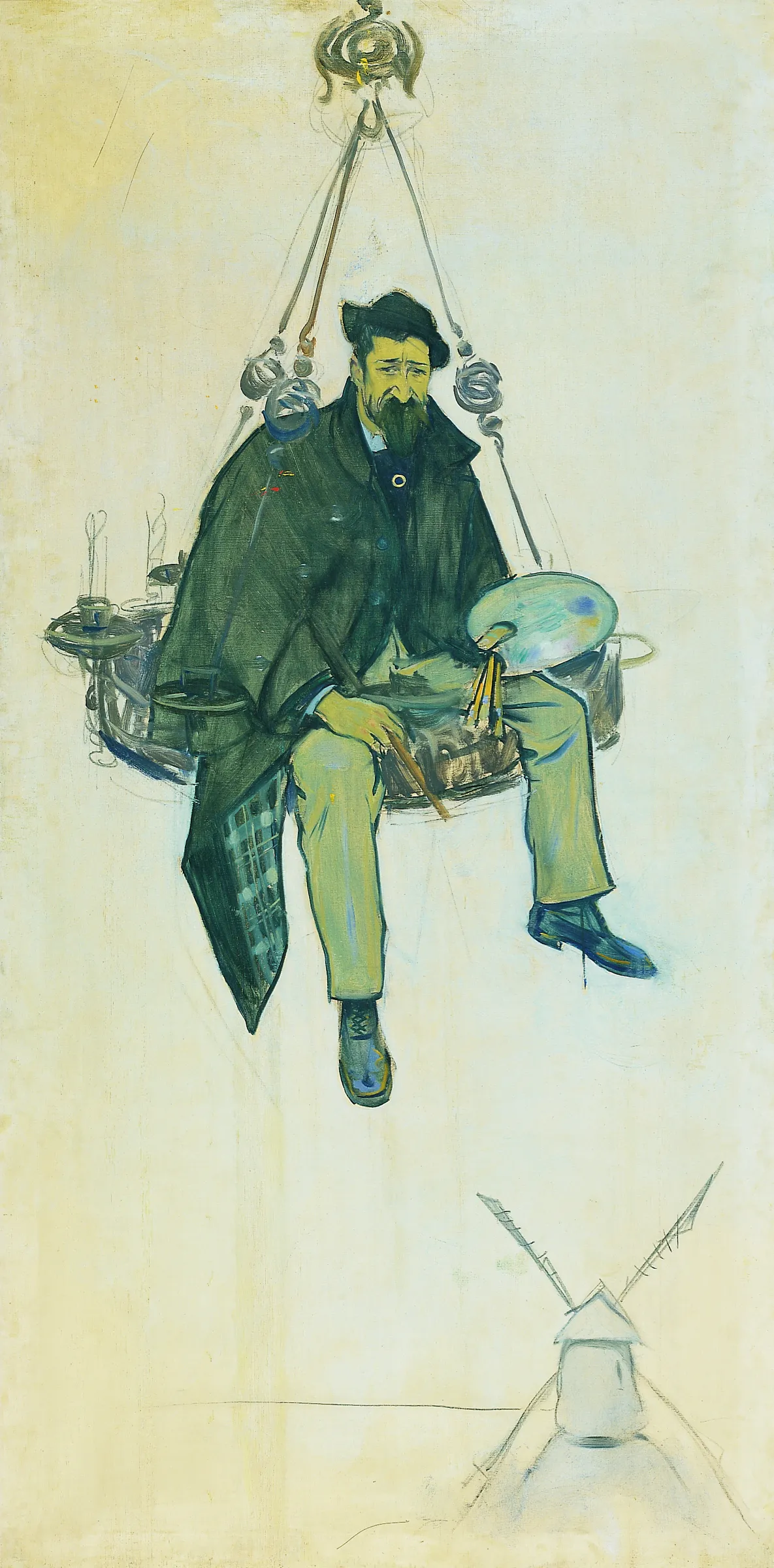 Rusiñol dalt d'un llum de ferro forjat (Rusiñol Perched on a Wrought Iron Chandelier)