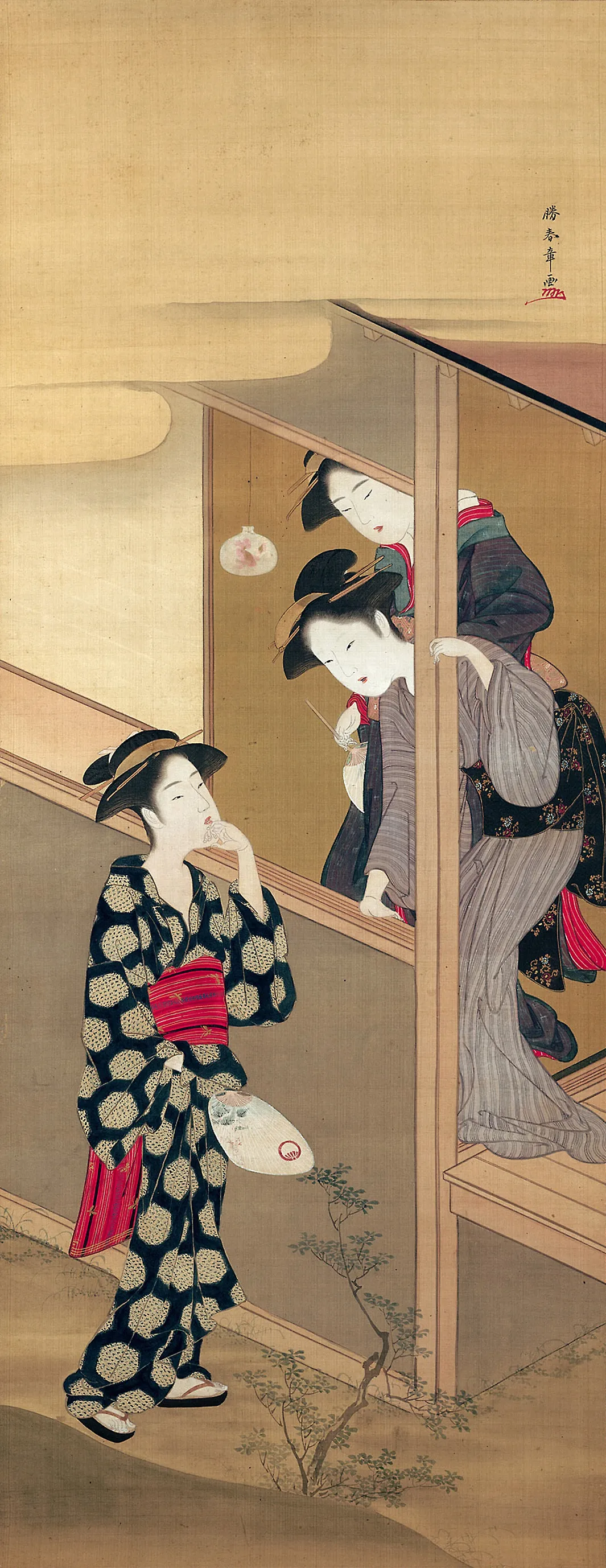 Three Beauties Chatting by a Veranda